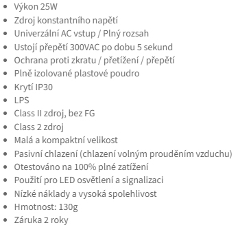 Alimentation AC/DC pour LED » Série APV. Alimentation a découpage MEAN WELL pour applications LED. Entrée - 90-264V AC, 127-370V DC. Sortie - 12V, 0 - 2,10A. Puissance - 25W. Dimensions - 84 x 57 x 29,5mm.