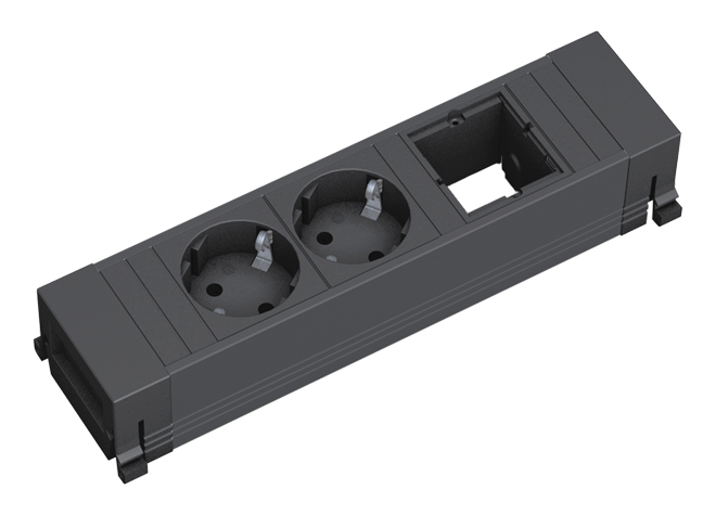 916.060 unité prise 2x 230V + 1x module libre, Schuko, entierement noire