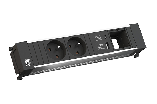 BACHMANN 916.528 unité a tiroirs 2x 230V FR, USB A+C 22W + 1x module libre