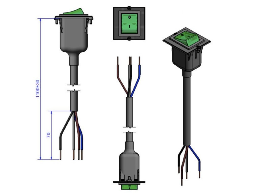 Arriere : câble 1 m H05VV-F 4G 1,50 mm2 avec embouts (.ily avec marquage correspondant)