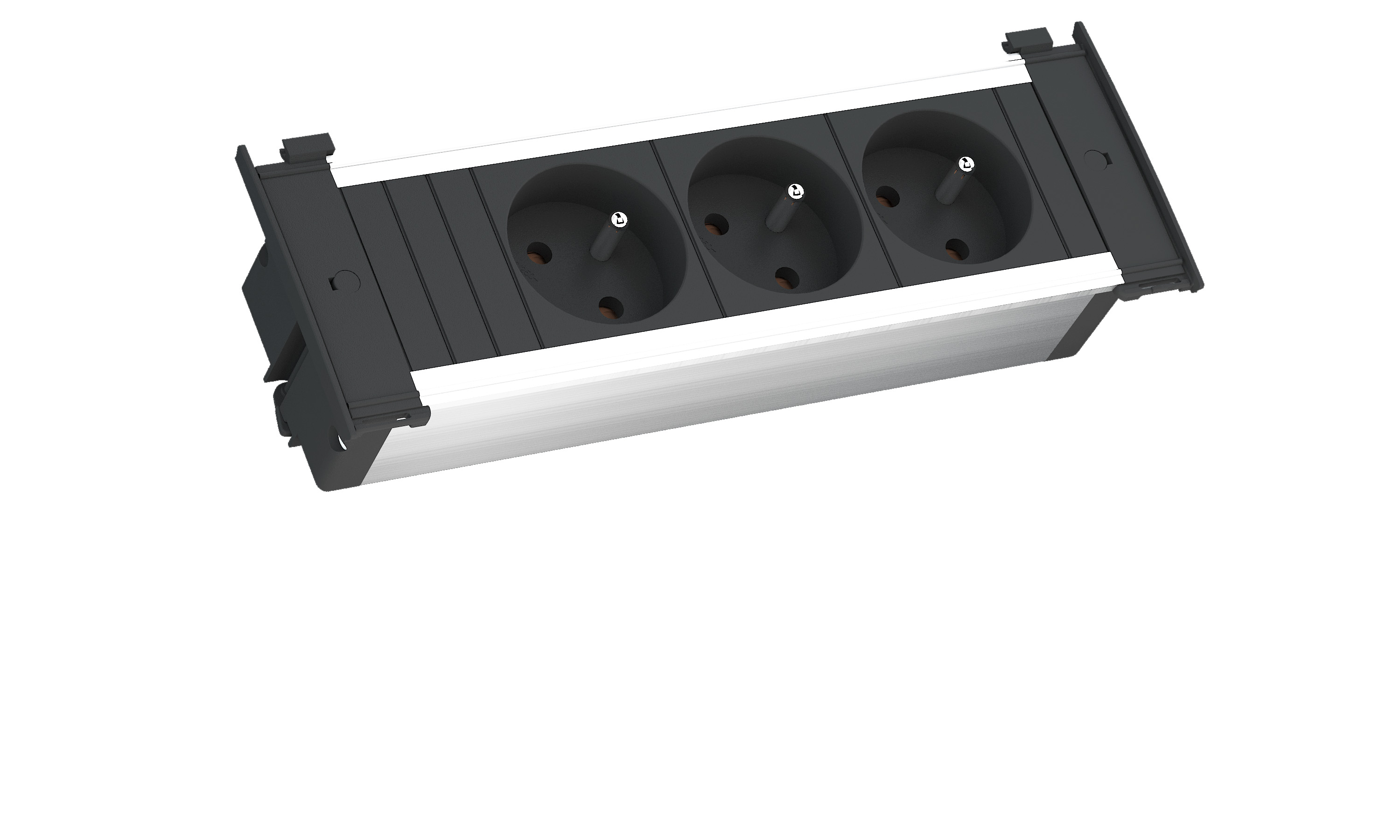 Unité a tiroirs KAPSA 3x230V 35° 2,0m H05VV-F3G1,5mm2, douilles, aluminium anodisé/noir