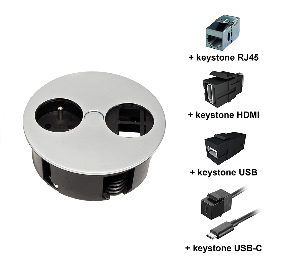 1x tiroir 230V + 2x module utilisateur libre (USB - A/C de liaison, RJ45, HDMI) - a commander séparément