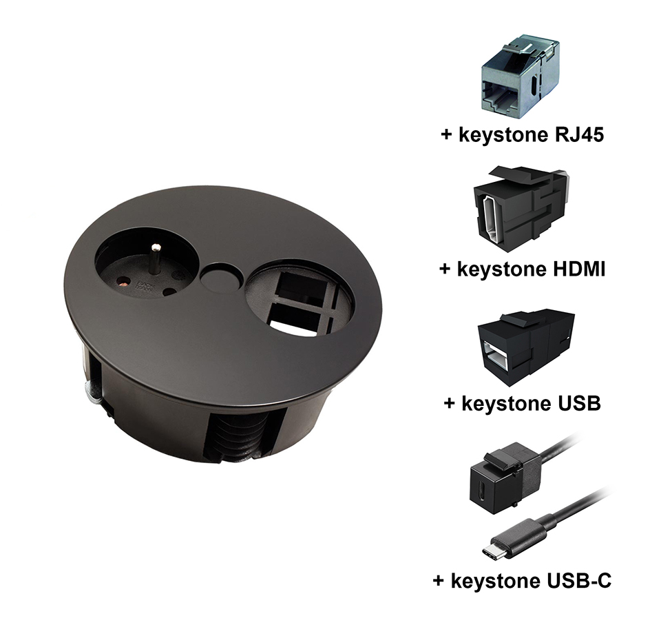 1x tiroir 230V + 2x module utilisateur libre (USB - A/C de liaison, RJ45, HDMI) - a commander séparément