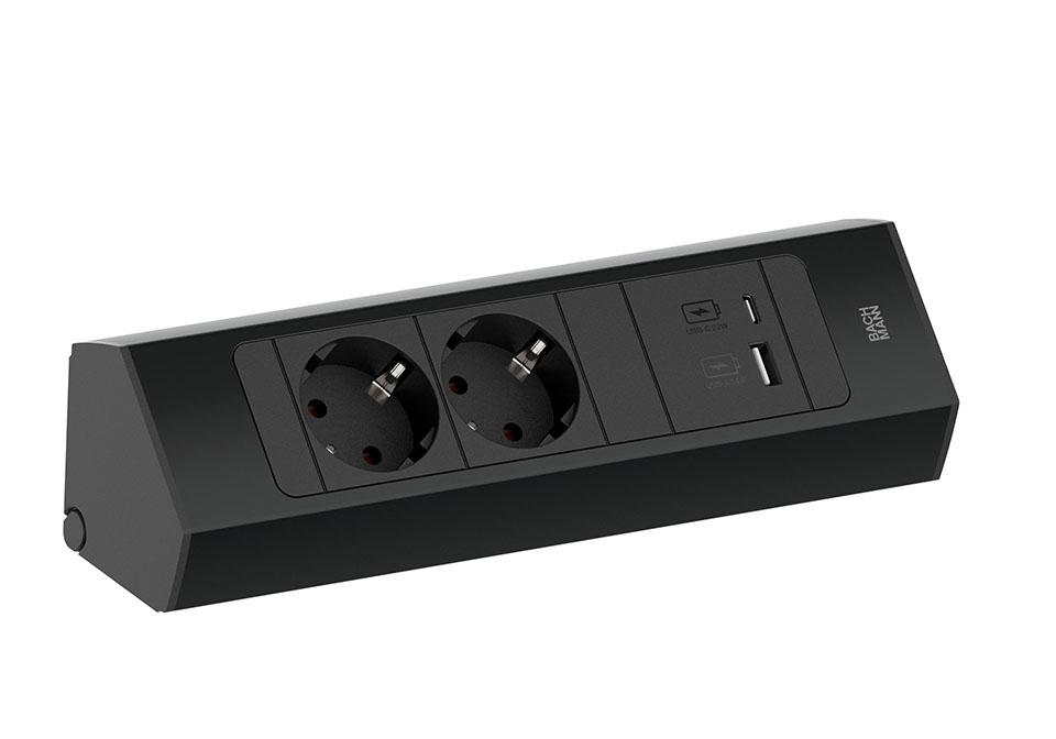 Quincaillerie et matériel complémentaire Équipement de bureau Prises électriques de bureau BACHMANN 932.102 Casia 2, 2x230V + 1xUSB A/C black RAL9005 schuko