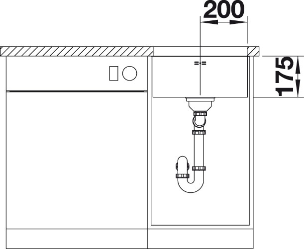 ensemble de poignées, siphon avec dérivation pour lave-vaisselle