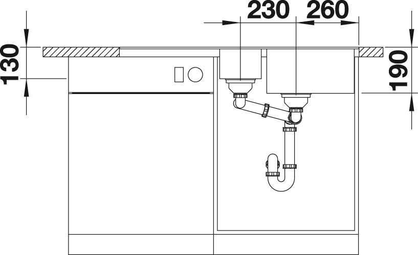 Blanco 519115 Éviers SILGRANIT® PuraDur® II affleurants avec plan de travail METRA 6 S-F blanc avec excentrique