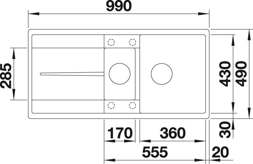 Blanco 519118 Éviers SILGRANIT® PuraDur® II affleurants avec plan de travail METRA 6 S-F gris roche avec excentrique