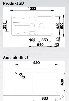 Blanco 519858 KSV-silgranit évier-03 SONA 6 S tartufo sans excentrique sans cuvette réversible