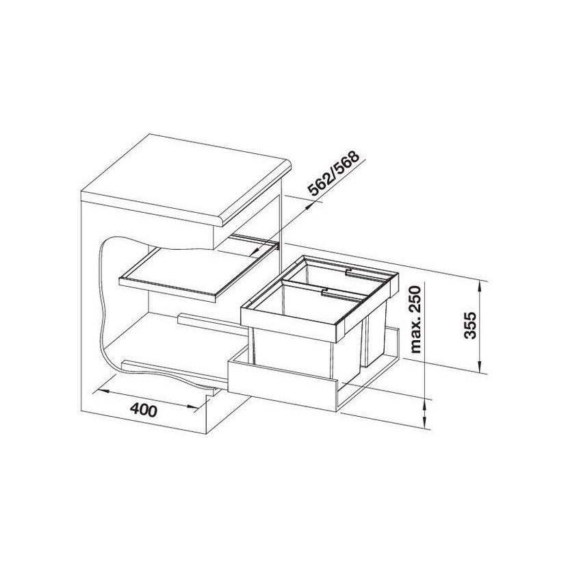 - hauteur d'installation 355 mm a partir du fond du tiroir, profondeur d'installation 400 mm