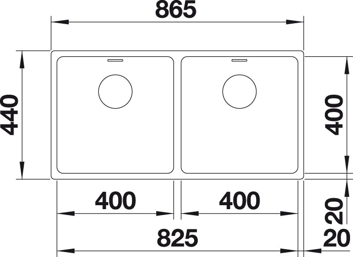 BLANCO 522985 ANDANO 400/400-IF inox brillant soyeux InFino sans excentrique