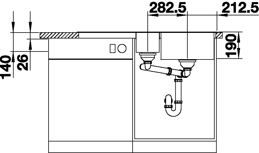 COLLECTIS 6 S café InFino avec excentrique, accessoires bol en plastique noir évier principal a droite