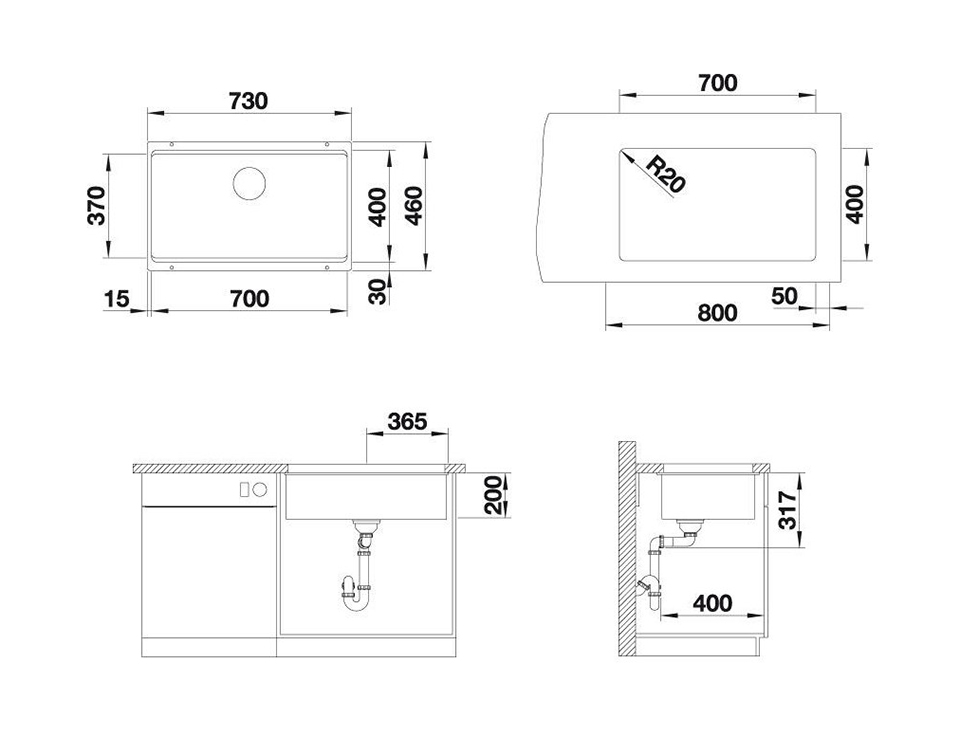 BLANCO 525891 Évier sous plan ETAGON 700-U noir SILGRANIT® PuraDur® InFino sans excentrique
