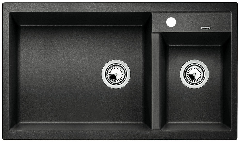 BLANCO 525936 évier encastrable METRA 9 noir SILGRANIT® PuraDur®, sans excentrique, double évier 2x3 1", évier principal a gauche, sans accessoires