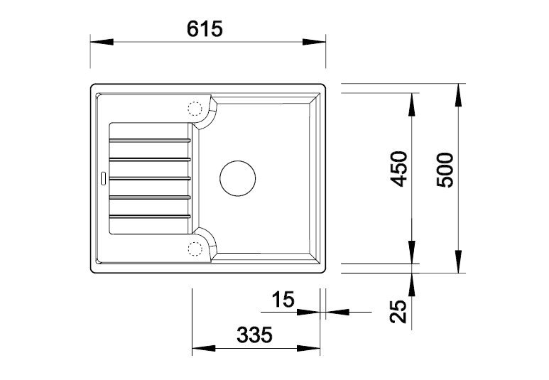 évier 3 1/2" avec égouttoir, réversible, sans accessoires