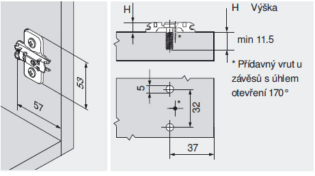BLUM 173L8130 rondelle de montage croisée vis euro 11,5mm