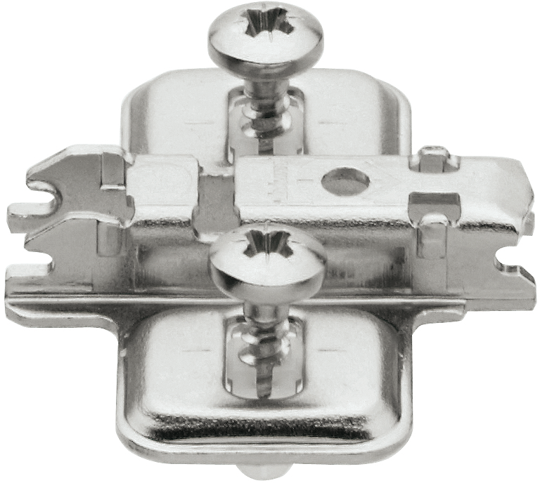 Fixation : EXPANDO pour montage combiné des charnieres. Distance entre les positions de fixation : 32 mm. Distance du bord avant du corps au 1er trou de fixation : 37 mm. Diametre des trous de fixation : 5 mm. Profondeur des trous de fixation : 7,5 mm. Réglage en hauteur de la platine de montage : avec trou longitudinal