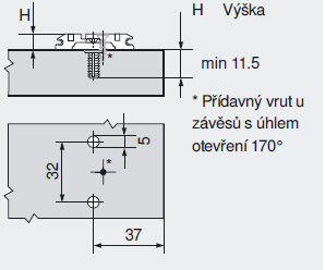 Cale en croix avec chevilles prémontées surélevée de 3 mm. Les vis pré-réglées se vissent dans les chevilles, qui se déchirent et ainsi fixent la sous-couche. Il s'agit de la connexion la plus solide possible entre quincaillerie + DTD. Ce type de connexion est disponible pour la quincaillerie BLUM sous le nom EXPANDO.