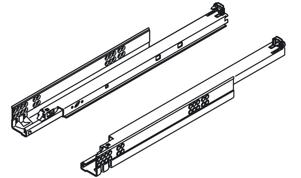 Tiroir coulissant complet avec Blumotion intégré. Capacité de charge 50kg. Montage avec les attaches T51.1700 L - 13469, P - 13470. Tiroir coulissant innové dont les modifications renforcent considérablement ce tiroir et éliminent son affaissement.