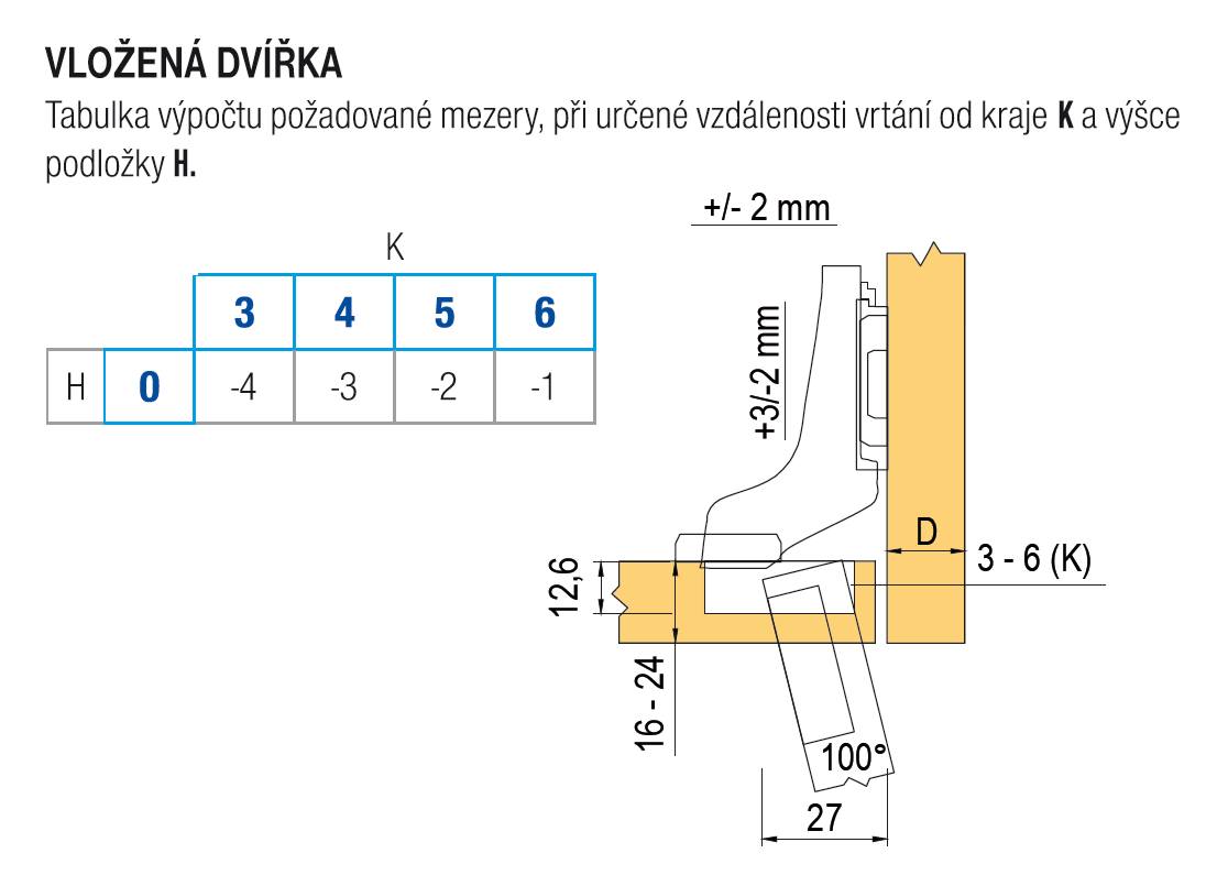 Charniere avec angle d'ouverture de 100°, bol pour vis a bois, pour TIP-ON. Rondelles de base : autres voir catalogue Blum vis a bois 173L6100 - 12306, euro 173L8100 - 12318, réglage excentrique 173H7100 - 12340, expando 174E6100.01 - 12302.