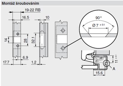 Charniere encastrée pour TipOn sur cadre alu étroit. Angle d'ouverture 95°.