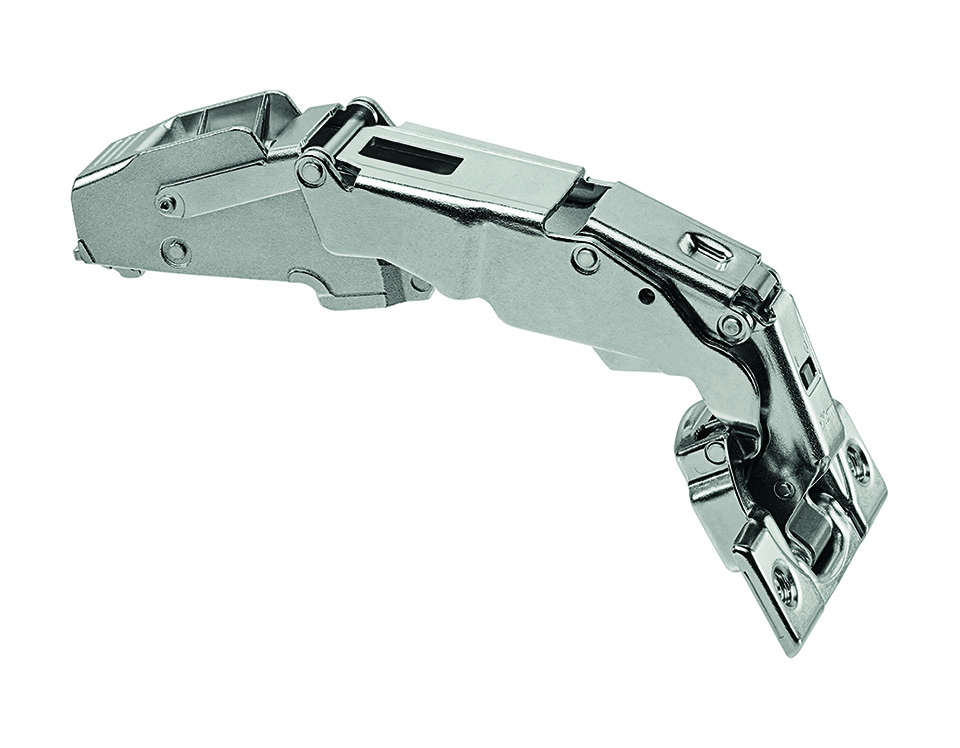 Charniere 155° (a l'ouverture a 90°, la porte empiete de 7,2 mm a l'intérieur du profil du corps – non adapté pour les armoires alimentaires). Rondelles de base : autres voir le catalogue Blum vis a bois 173L6100 - 12306, euro 173L8100 - 12318, réglage par excentrique 173H7100 - 12340, expando 174E6100.01 - 12302.