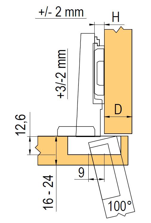 Charniere avec angle d’ouverture de 100°, bol a visser. Peut etre combinée avec l’amortisseur de butée BLUMOTION a clips sur le cintre de la charniere 973A0500 - 12391. Rondelles de base : autres voir catalogue Blum vis a bois 173L6100 - 12306, euro 173L8100 - 12318, réglage excentrique 173H7100 - 12340, expando 174E6100.01 - 12302.