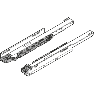 Le tiroir coulissant LEGRABOX BLUMOTION S est conçu a la fois pour un tiroir avec amortissement et pour une version sans poignée avec TIP-ON BLUMOTION. L’amortissement de base BLUMOTION est déja intégré dans le systeme, mais pour une réalisation avec TIP-ON BLUMOTION, veuillez compléter le systeme avec le module approprié selon la profondeur et le poids total du tiroir (y compris la façade et le contenu du tiroir). Pour un fonctionnement correct du systeme, il est nécessaire d’ajouter la synchronisation – arbre 282277.
