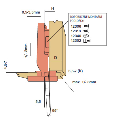 Charniere CLIP top avec angle d'ouverture de 94°, pour porte en verre en applique. Entretoises de base : autres voir catalogue Blum vis a bois 173L6100 - 12306, euro 173L8100 - 12318, réglage excentrique 173H7100 - 12340, expando 174E6100.01 - 12302.