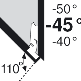 Charniere d’angle -45°. Angle d’ouverture 110°. Uniquement pour porte appliquée. Amortisseur de butée BLUMOTION a encastrer côté charniere 970A1002 - 12398. Entretoises de base : autres voir catalogue Blum vis a bois 173L6130 - 12304, euro 173L8130 - 12305, réglage excentrique 173H7130 - 12341, expando 174E6130.01 - 12303.