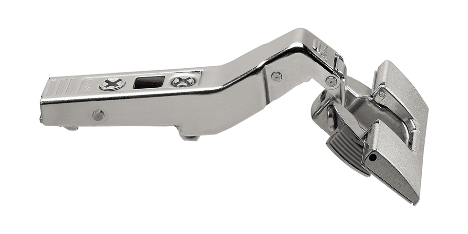 Charniere d'angle +45°. Angle d'ouverture 95°. Montage INSERTA. Amortisseur a clipser sur le cintre de charniere 973A7480 - 12382. Pour meubles d'angle avec façades encastrées. Plaques de base : autres voir catalogue Blum vis a bois 173L6100 - 12306, euro 173L8100 - 12318, réglage par excentrique 173H7100 - 12340, expando 174E6100.01 - 12302.