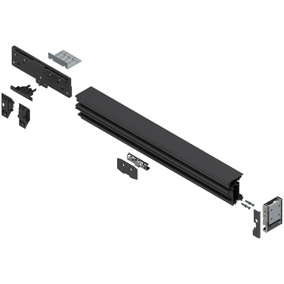 REVEGO duo. Prolongation de rail, longueur : 642 mm, pour largeur utile en utilisation : 700 mm, gauche. Matériau : Aluminium (Alu). Couleur/finition : Noir. Mode de fixation : A insérer et visser. Portée de l'article : Ensemble.