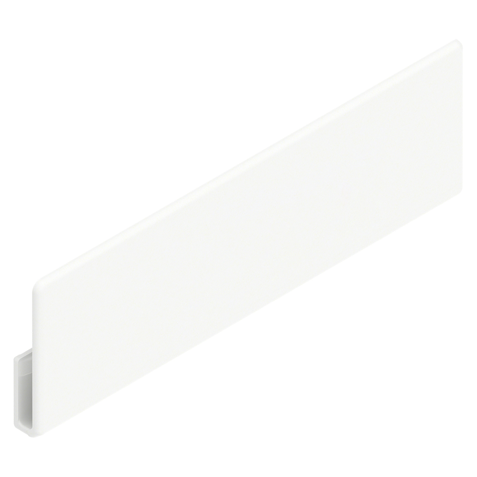 Cache-vis pour MERIVOBOX, symétrique, sans logo BLUM, destinée a l'impression du logo client, blanc soyeux.