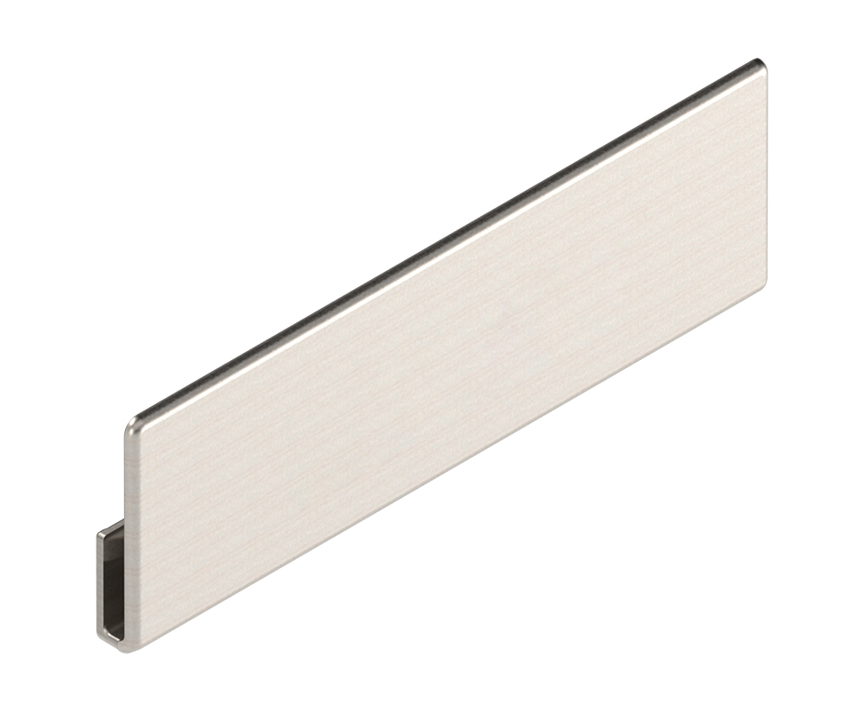 Cache-vis pour MERIVOBOX ou Aventosy top sans logo, symétrique, adaptée pour impression du logo client, matériau plastique, apparence inox brossé longitudinalement.