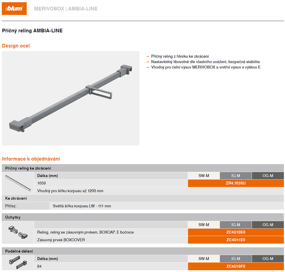 BLUM ZC4U10E0 support de tringle transversale pour reling/Boxcap MERIVOBOX, blan