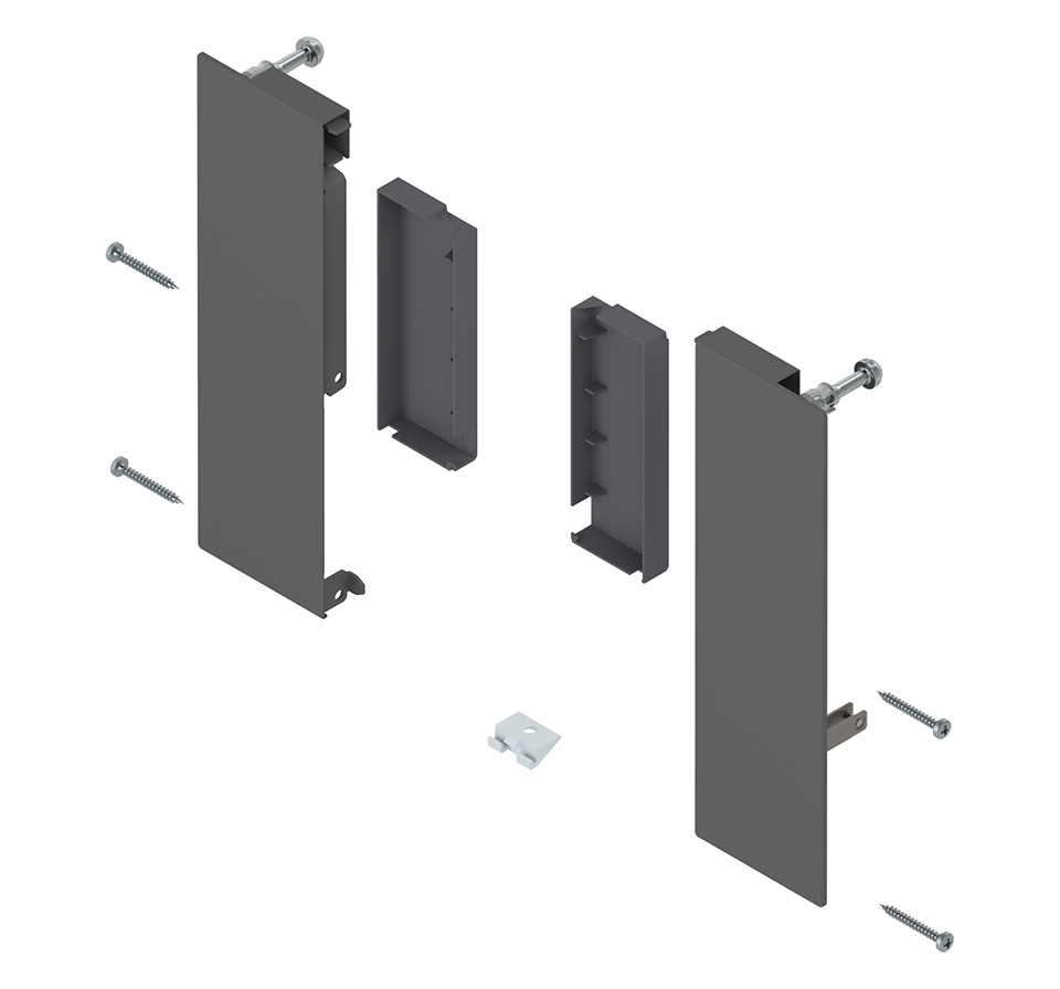MERIVOBOX quincaillerie frontale, hauteur E, pour tiroir coulissant intérieur avec reling, gauche/droite