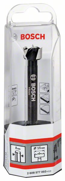 - The three-sided shank of the Forstner drill makes it impossible to spin in the chuck