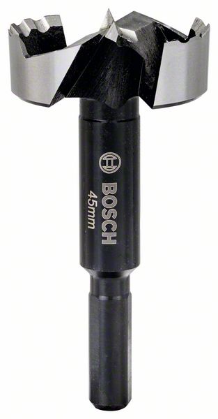 - The three-sided shank of the Forstner drill makes it impossible to spin in the chuck