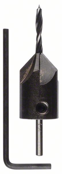 - The countersink is supplied with a hex socket wrench, a wood drill and a clamping sleeve