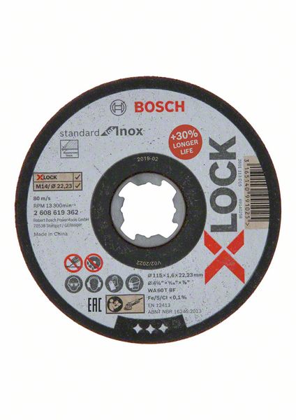 BOSCH 2608619362 X-LOCK cutting disc Standard for Inox 115 × 1.6 mm T41