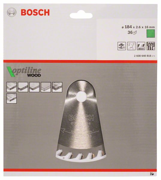 BOSCH 2608640818 Saw blade Optiline Wood 184 x 16 x 2.6 mm, 36