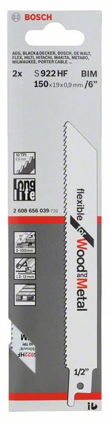 BOSCH 2608656039 Saw blade 2 pcs S 922 HF Flexible for Wood and Metal