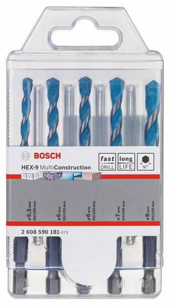 BOSCH 2608900585 5-piece drill set HEX-9 MultiConstruction 4/5/6/6/8 mm