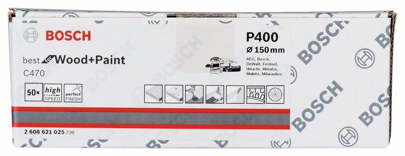 BOSCH 2608901145 Sanding paper C470, pack of 50 pcs., dia. 150mm, P400