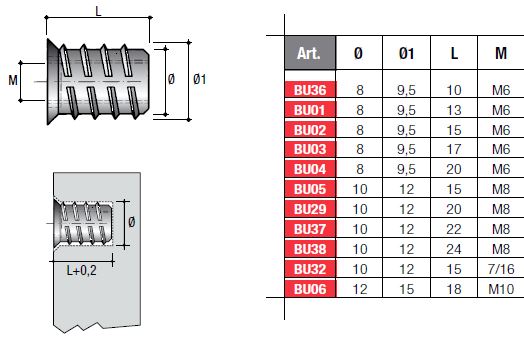 Diametre : 10 mm. L = 17 mm. M = M6. Emballage : 5 000 pcs. Matériau : zamac (alliage de zinc). Diametre de perçage : 8 mm.