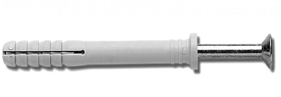 Cheville a frapper avec col plat en polyamide (nylon6) avec vis a bois a frapper PZ en acier C1010 zingué blanc
