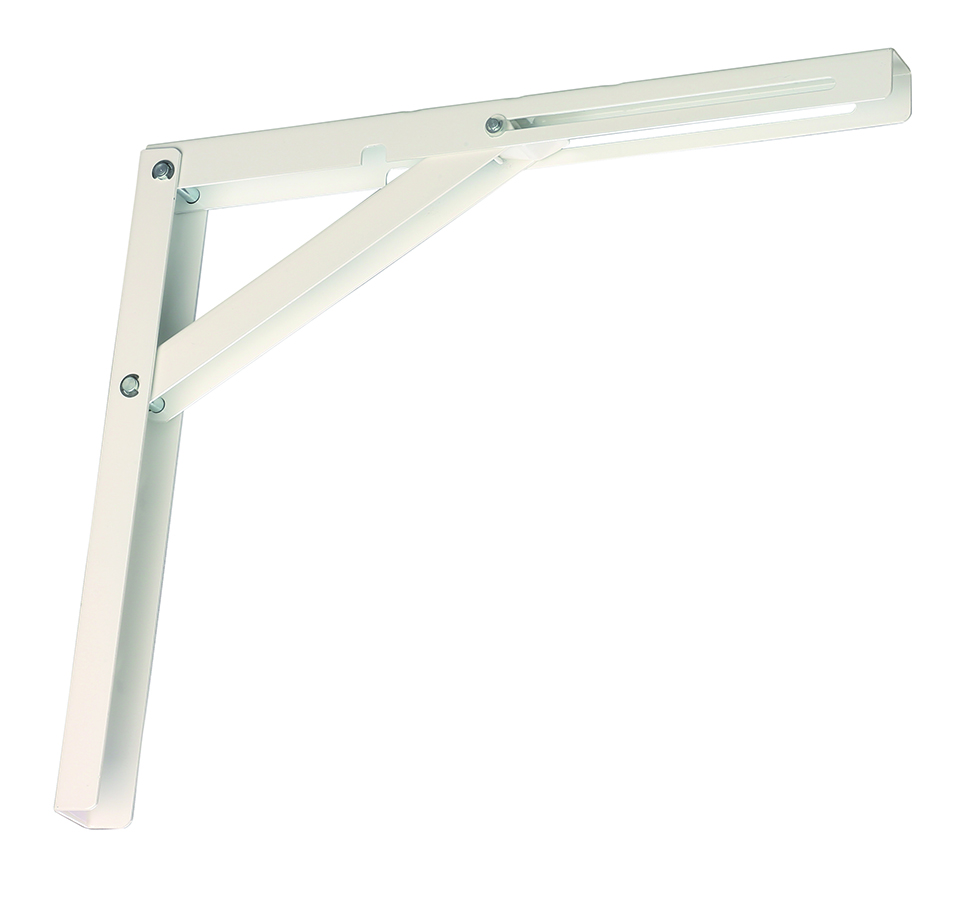 Console escamotable avec bras de 30 cm de long en couleur blanche. Capacité de charge 100 kg/paire.