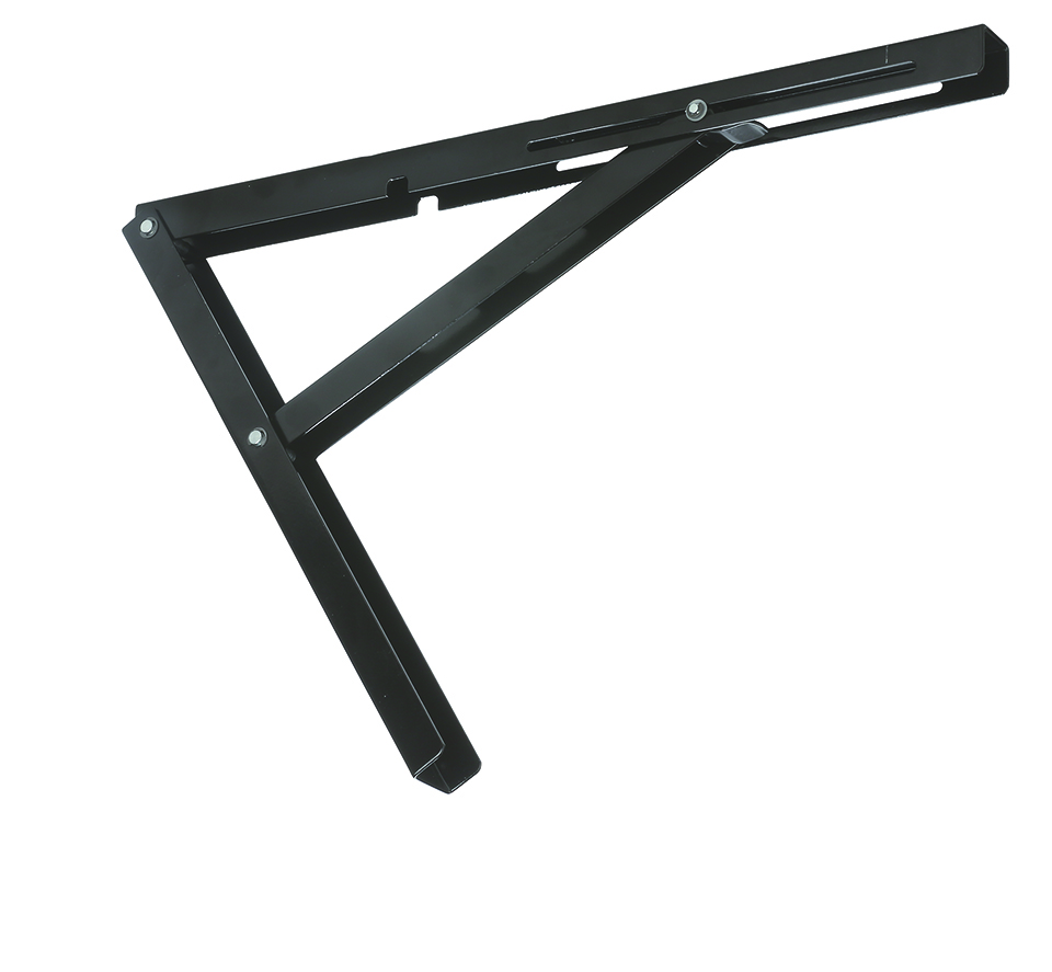 Console rabattable avec un bras de 40 cm de longueur en couleur noire. Capacité de charge 100 kg/par.