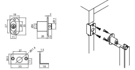 Serrure pour cadre en aluminium pour porte a chargement frontal - un vantail Ne peut pas etre utilisé pour les profils : Verona, Modena, Pisa, Imola, Corleone, Ravena.