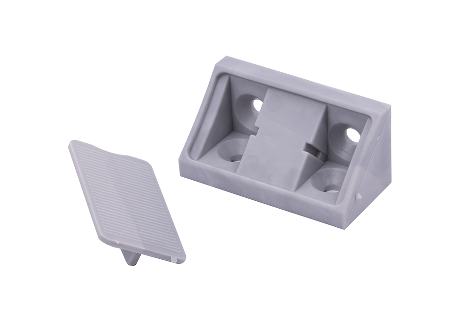 Équerre de raccordement en plastique intégral pour la connexion de panneaux perpendiculaires.