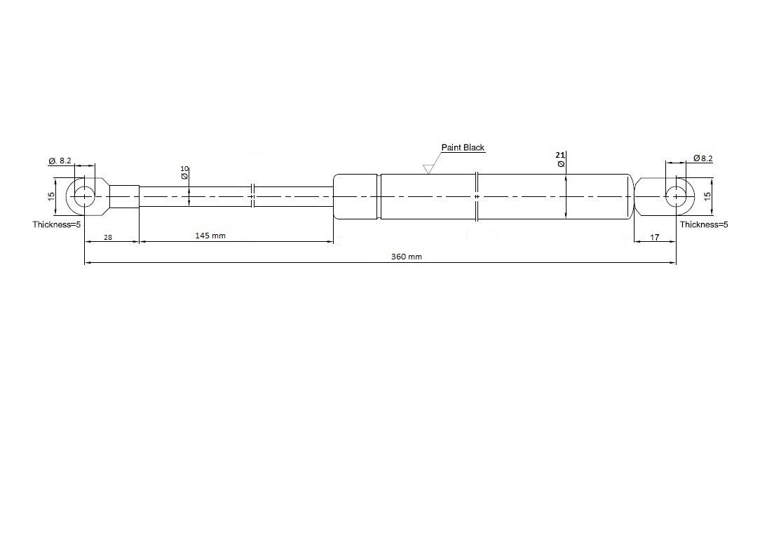 La longueur des ressorts a gaz 650N, 750N, 1000N et 1200N est de 360mm et l'angle d'ouverture d'environ 40°.